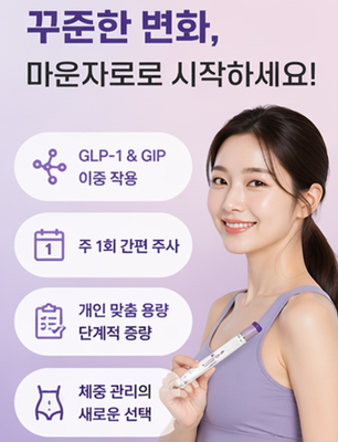 마운자로는 식욕 조절과 혈당 관리를 돕는 주 1회 체중 관리 주사입니다. 체중 감소와 식사 조절, 혈당 개선에 도움을 줄 수 있습니다. 식단이나 운동만으로 효과가 부족했던 분들께 도움이 될 수 있습니다.