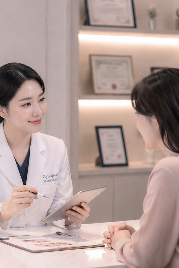 오랜 진료 경험과 세심한 상담으로 여성의 삶과 건강, 그리고 가족의 안심까지 함께 살피는 Gyungsun Women’s Clinic입니다.